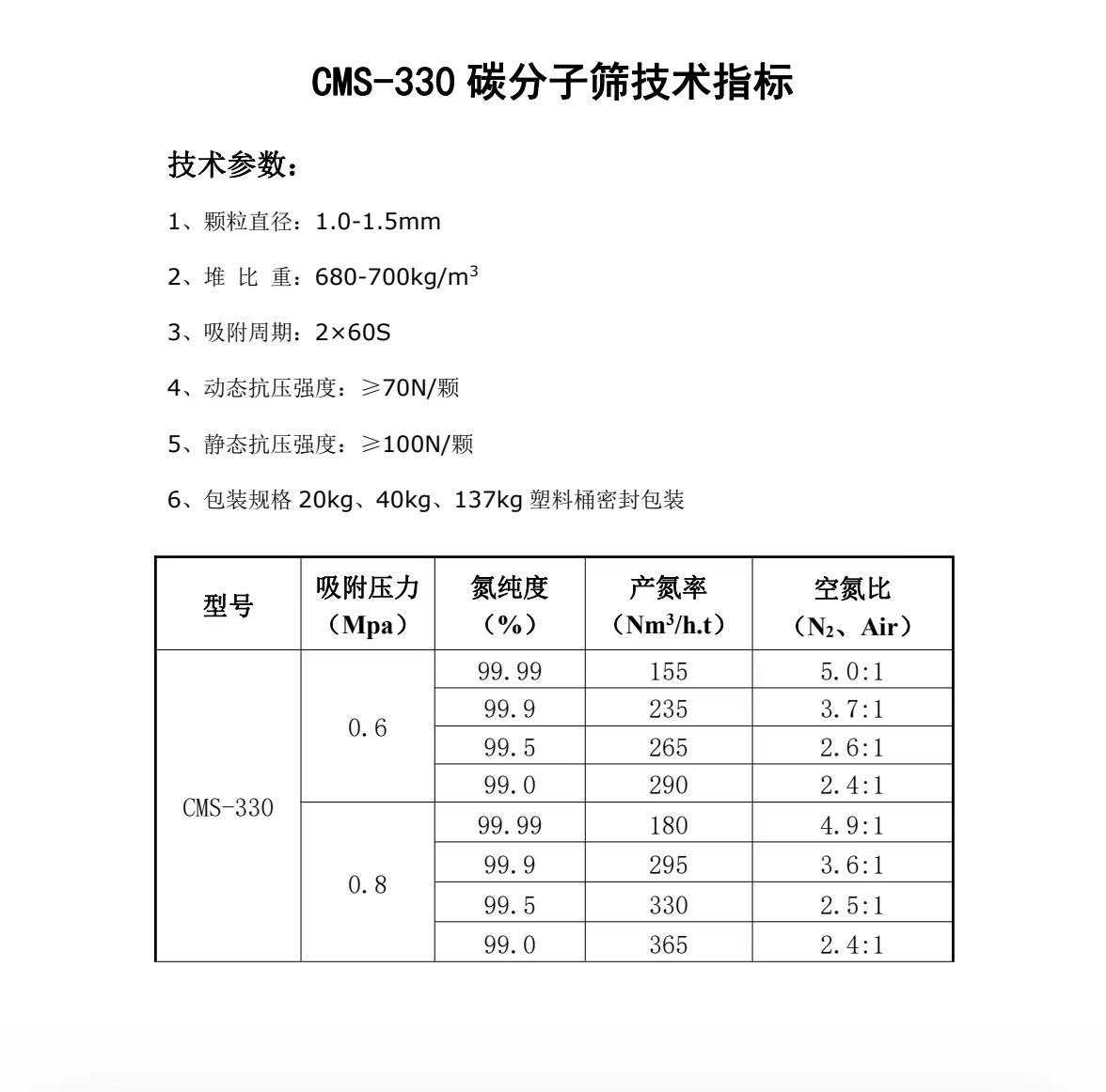 CMS-330碳分子筛技术指标