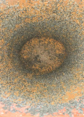 由于设备B塔处于严重生锈,塔上部吸附剂已严重结块,内部桶壁及底部筛板被吸附剂严重锈蚀,吸附剂有严重粉化状态,基本无法正常生产氮气,底部筛板上的螺丝全部锈蚀部分有断裂,筛板孔洞基本锈蚀堵死,而且筛网锈蚀破损严重,椰垫已经完全处于堵死状态,但加高层挡板状态完好。
