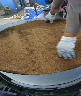 4对加高挡圈、法兰密封圈重新制作并更换椰垫。