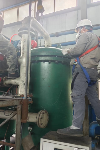 上图为安装完毕盖好法兰盖后图片。安装好后调整运行氮气纯度为99.9%,流量为500Nm³/h,符合合同要求。