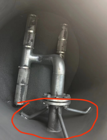 1在甲方要求制氮机厂家加焊承重钢条后,因焊接不牢固产生焊接条脱落无法起到承重中均压管道的作用,导致管道喷灰现象。