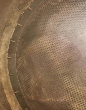 上图为底部筛网有明显的网孔重叠,分子筛可以轻易通过重叠网孔而进入底部进气孔而漏到吸附塔的外面,从而造成分子筛的松动。