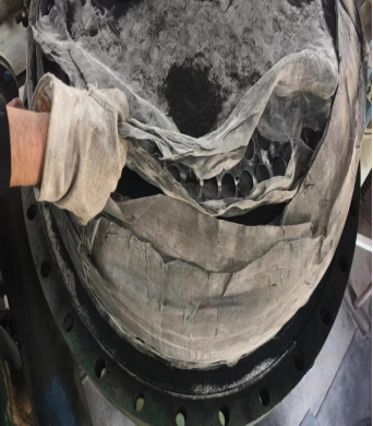 2中均压管筛网破损严重导致吸附材料直接流窜到管道,造成吸附材料粉化严重、阀门损坏频繁及喷灰问题。